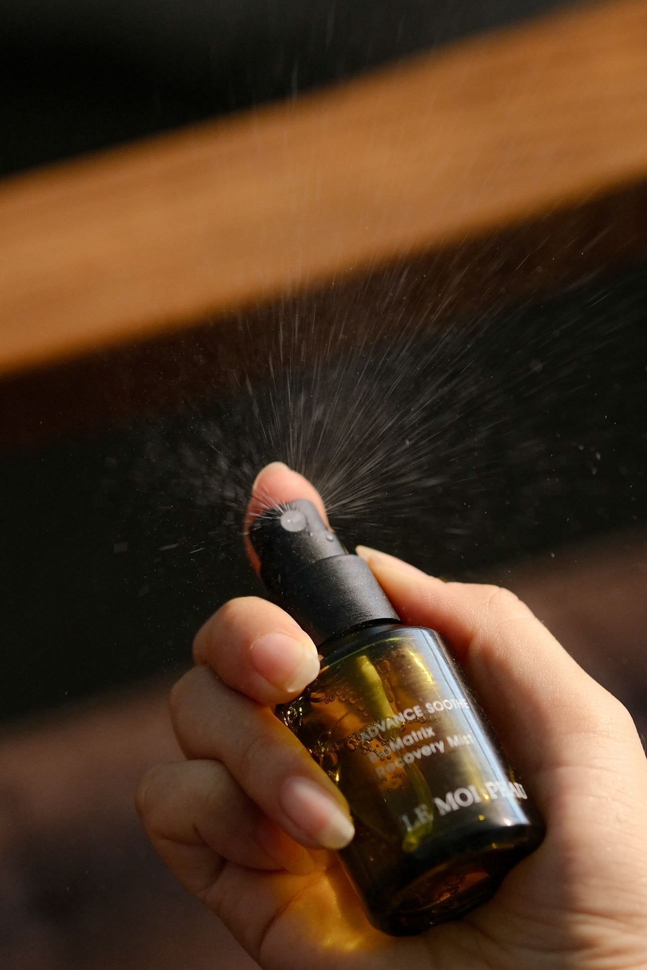 使用方法:先噴後酸,等 30 秒完全吸收後再上 A 醇或酸類。降低刺激感、補水並保護屏障,等於先給皮膚鋪防護墊。